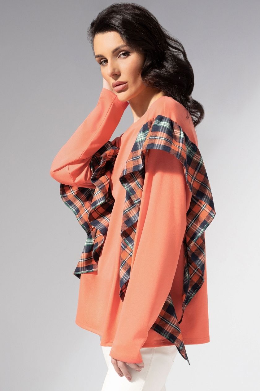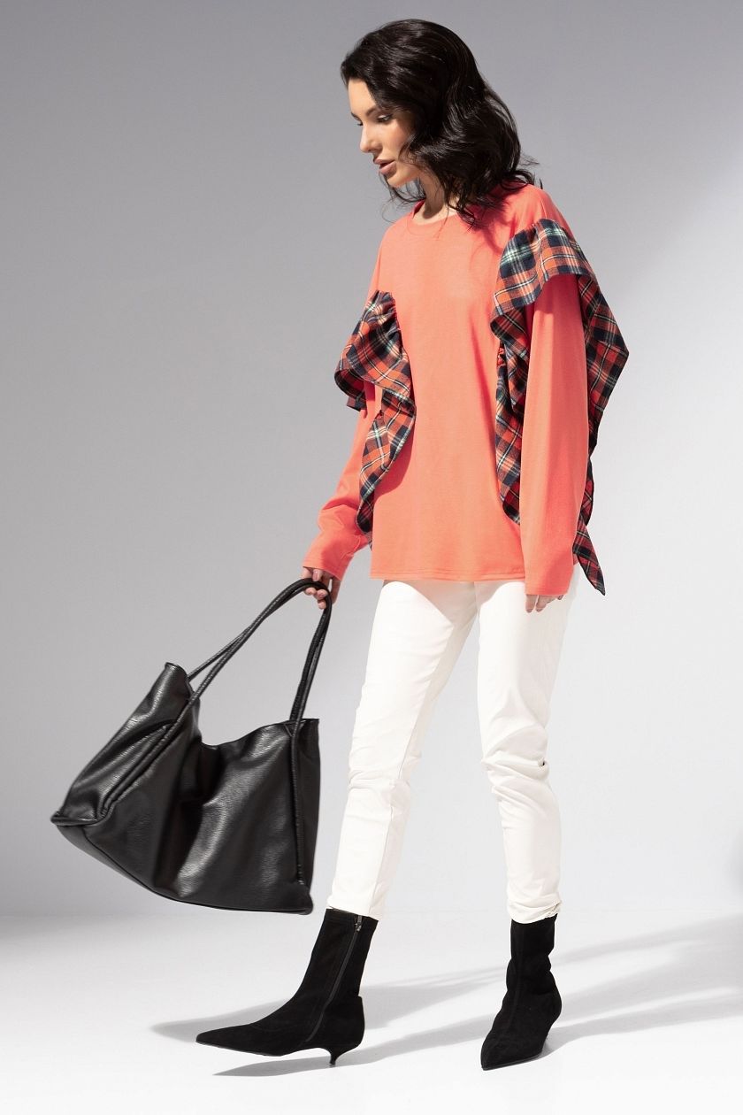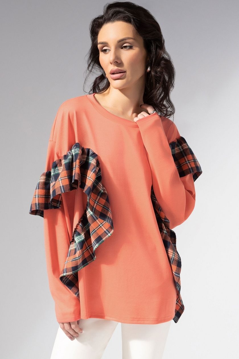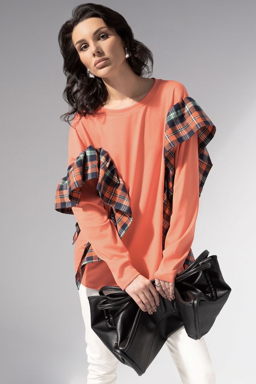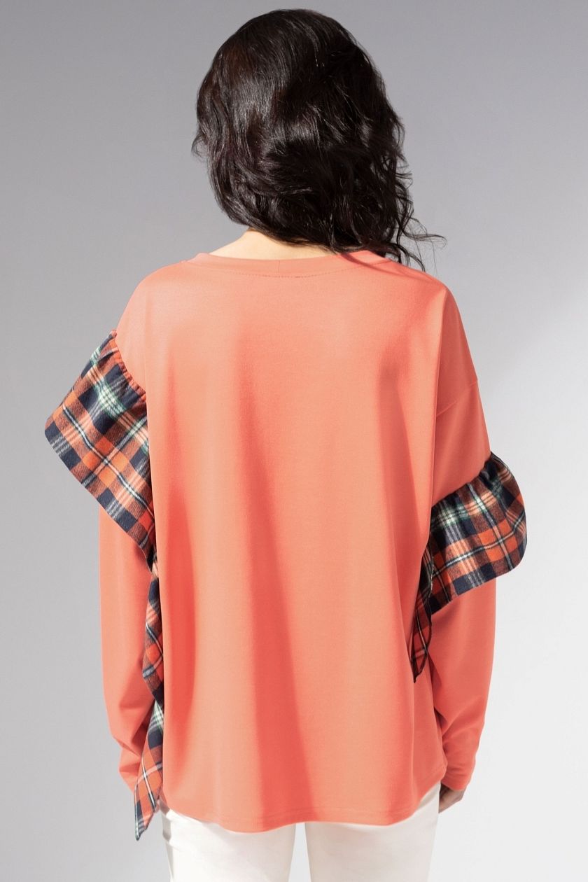 Лонгслив трикотажный в стиле пэчворк от компании Charutti. Лонгслив свободного кроя, круглый вырез горловины. Модель украшена элегантными объемными рюшами, которые создают выразительный акцент и подчеркивают женственный силуэт. Идеальный выбор для создания неповторимого образа.