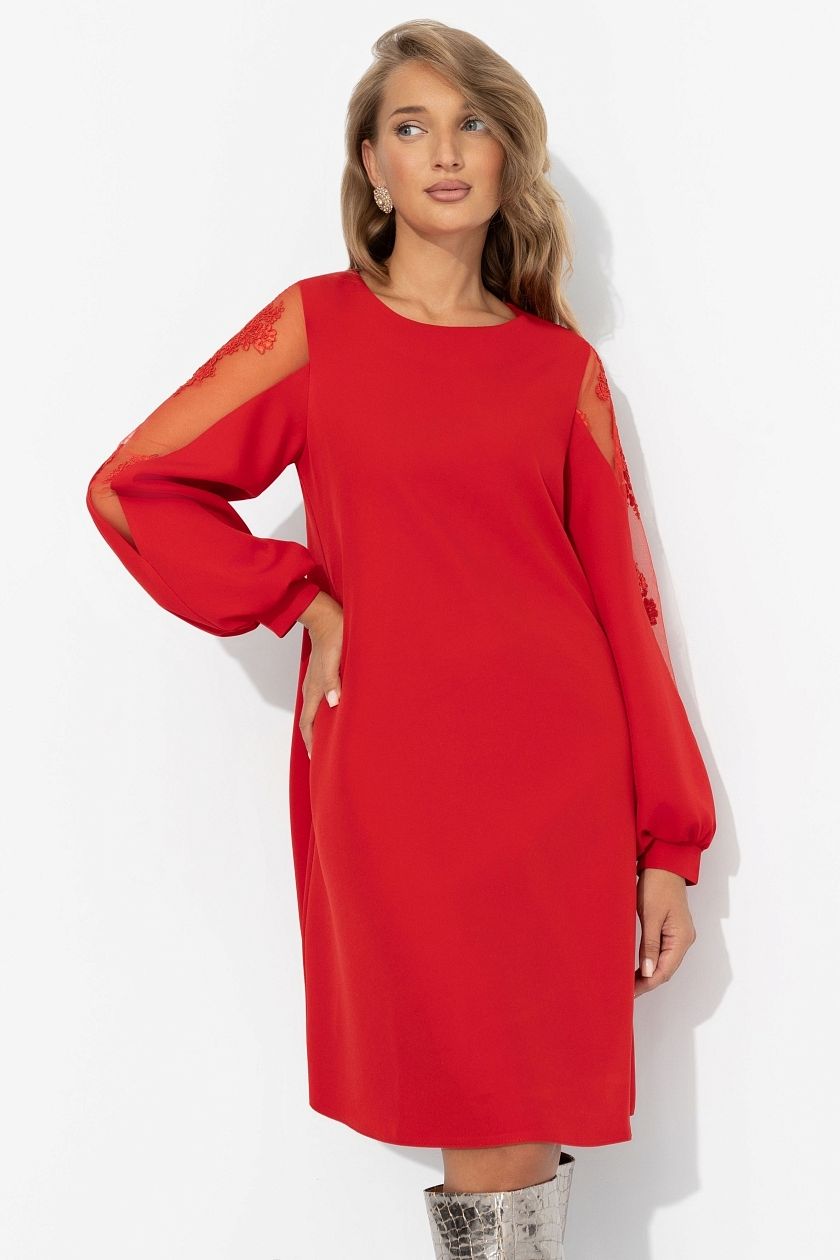 Платье красное с декором на рукавах
