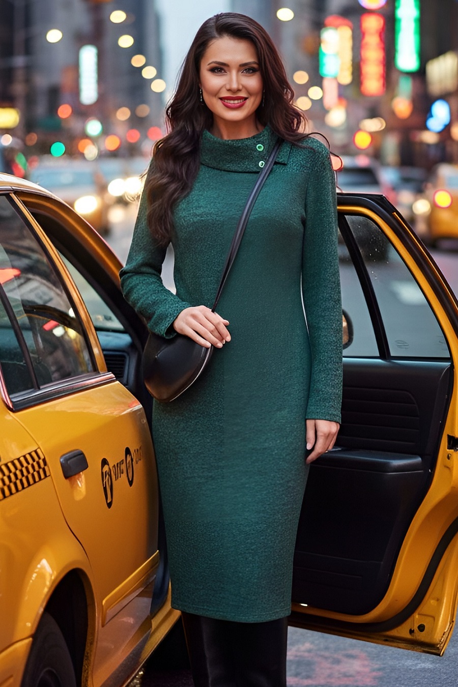 Платье-футляр трикотажное с длинными рукавами Утонченная элегантность, грин