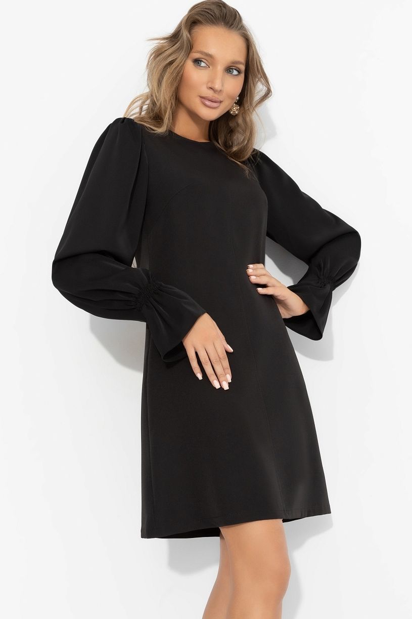 Платье чёрное комбинированное с шёлком от компании Charutti. Модель свободного силуэта, выполнена из костюмного полотна. Круглый вырез горловины, с застёжкой на пуговицу по спинке. Втачные длинные рукава на резинке, с защипами по окату, выполнены из сатина. Идеальный выбор для городских модниц.