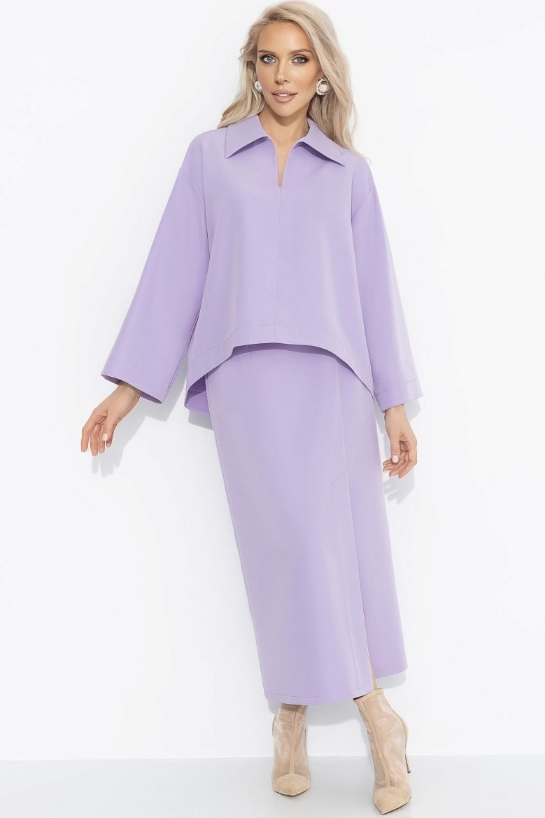 Костюм сиреневый с юбкой и со съёмной розой