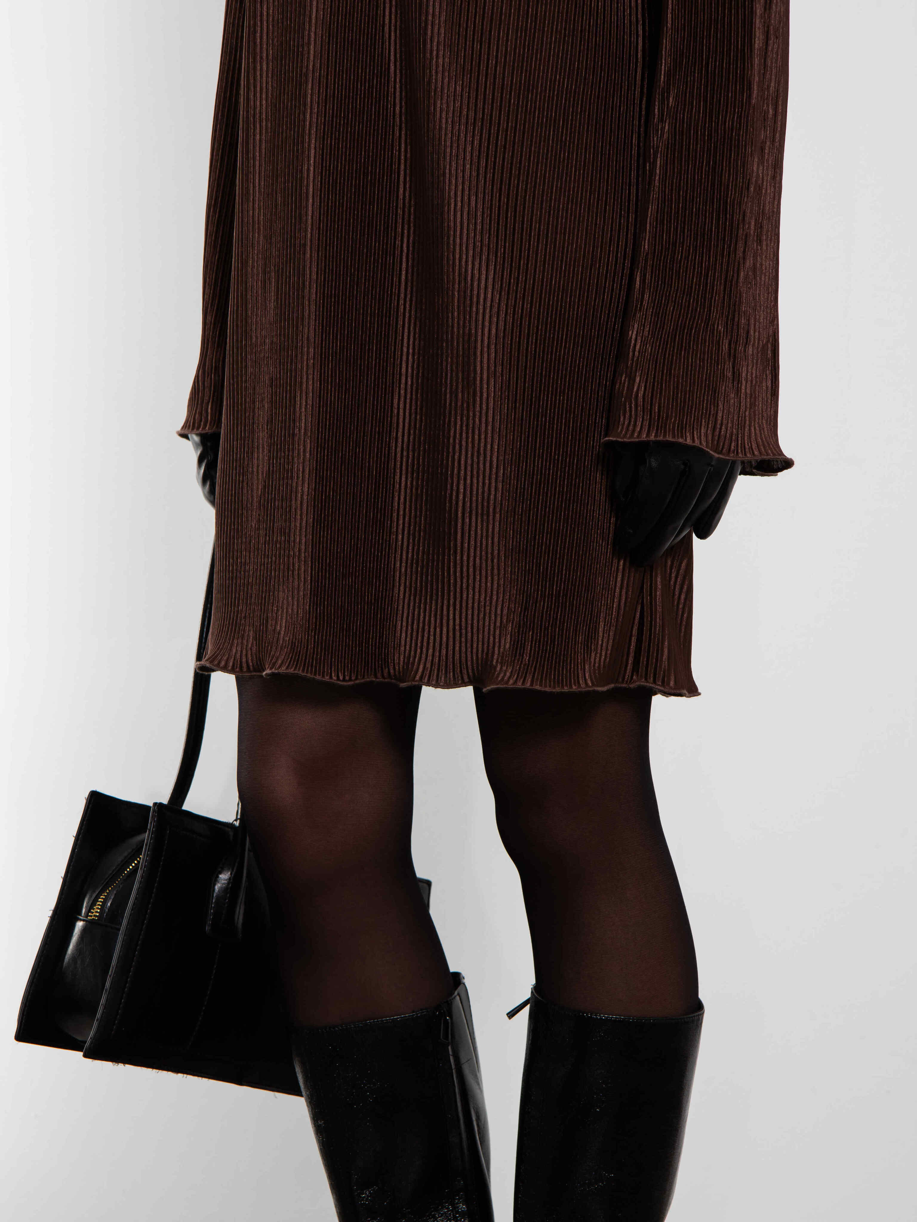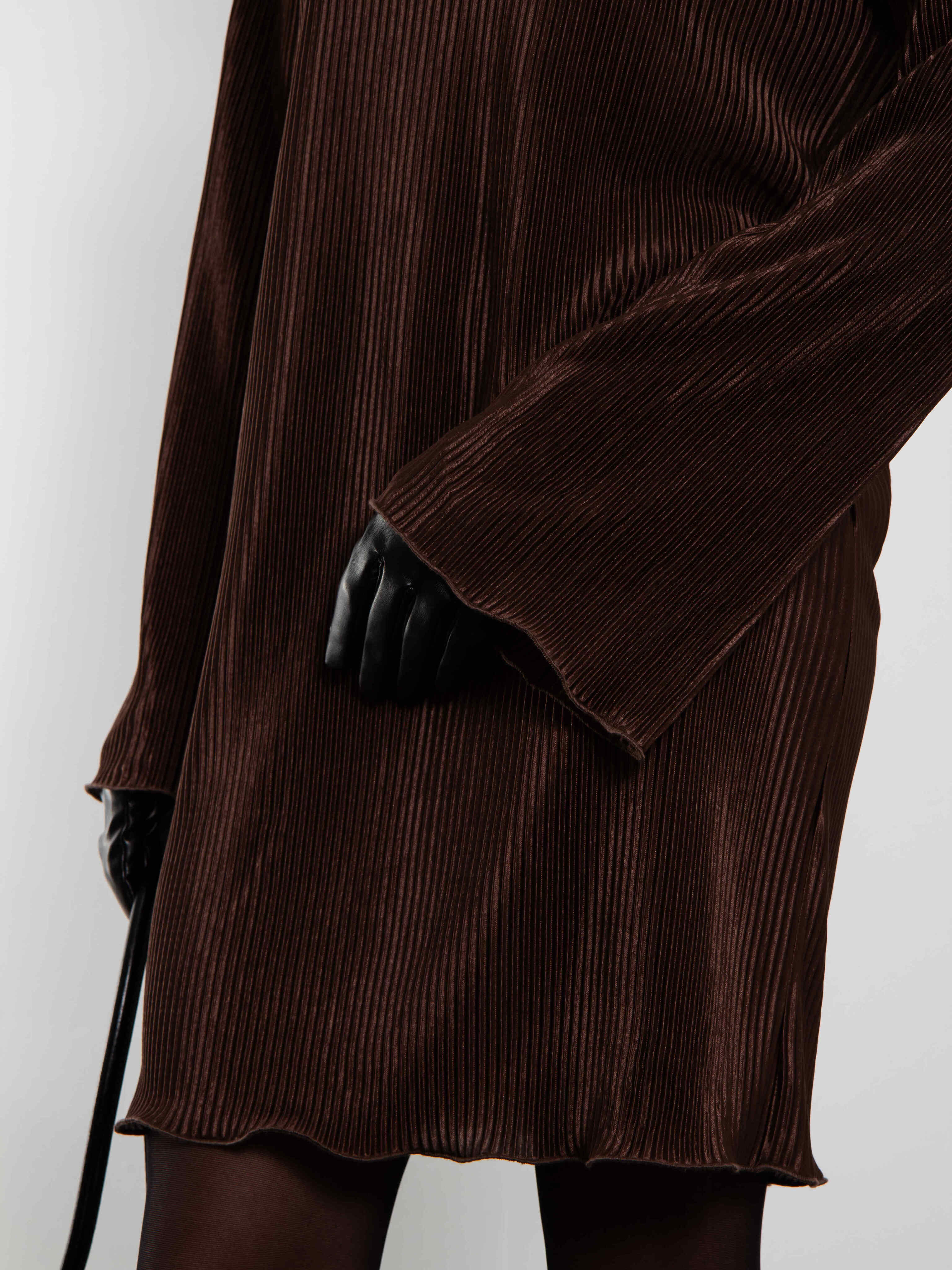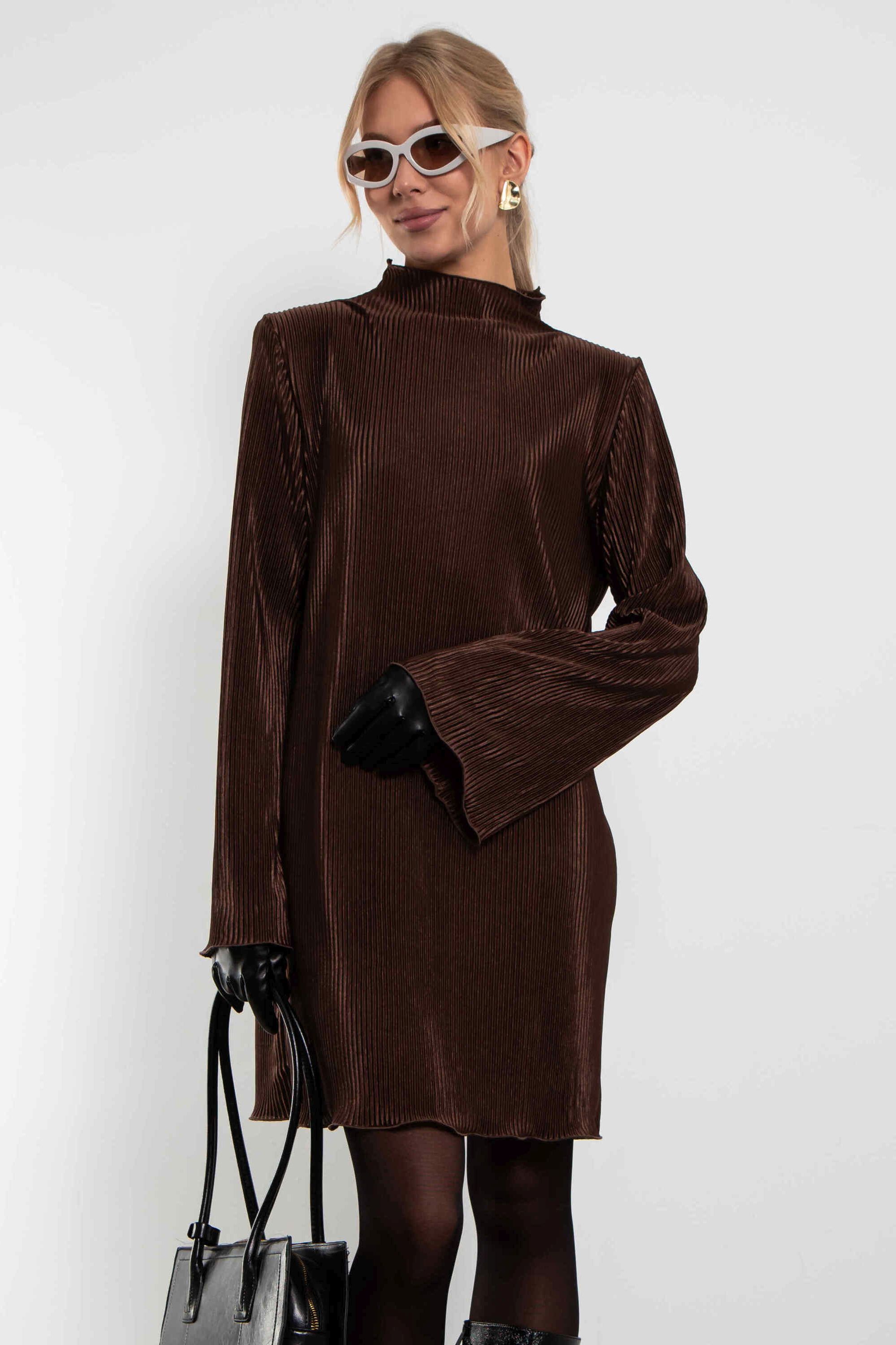 Платье из гофрированного трикотажа шоколадного цвета