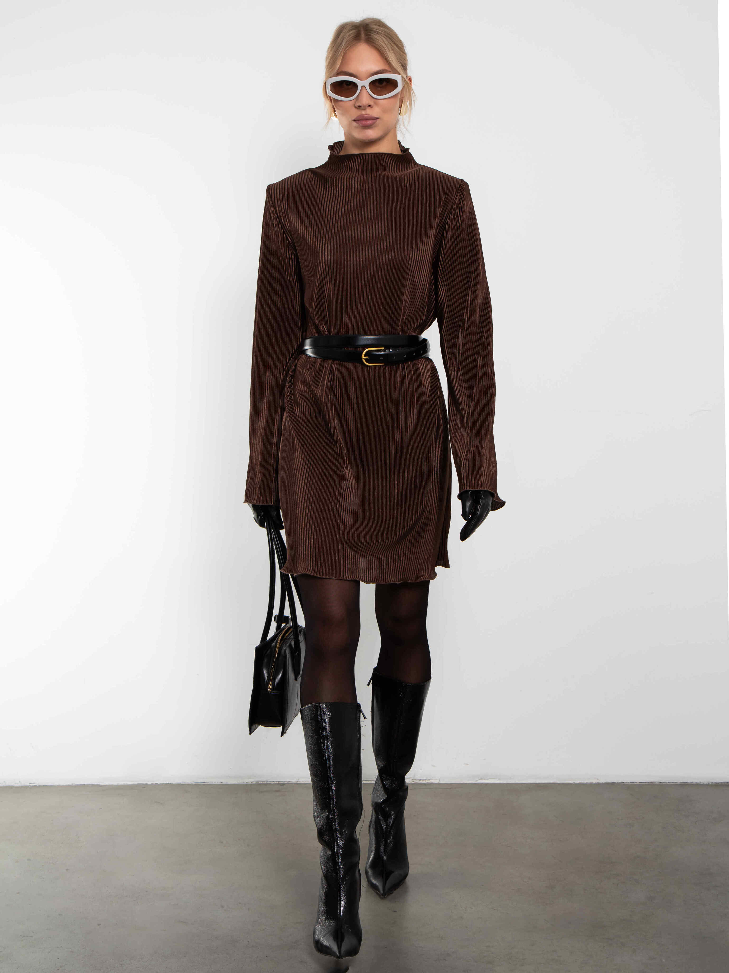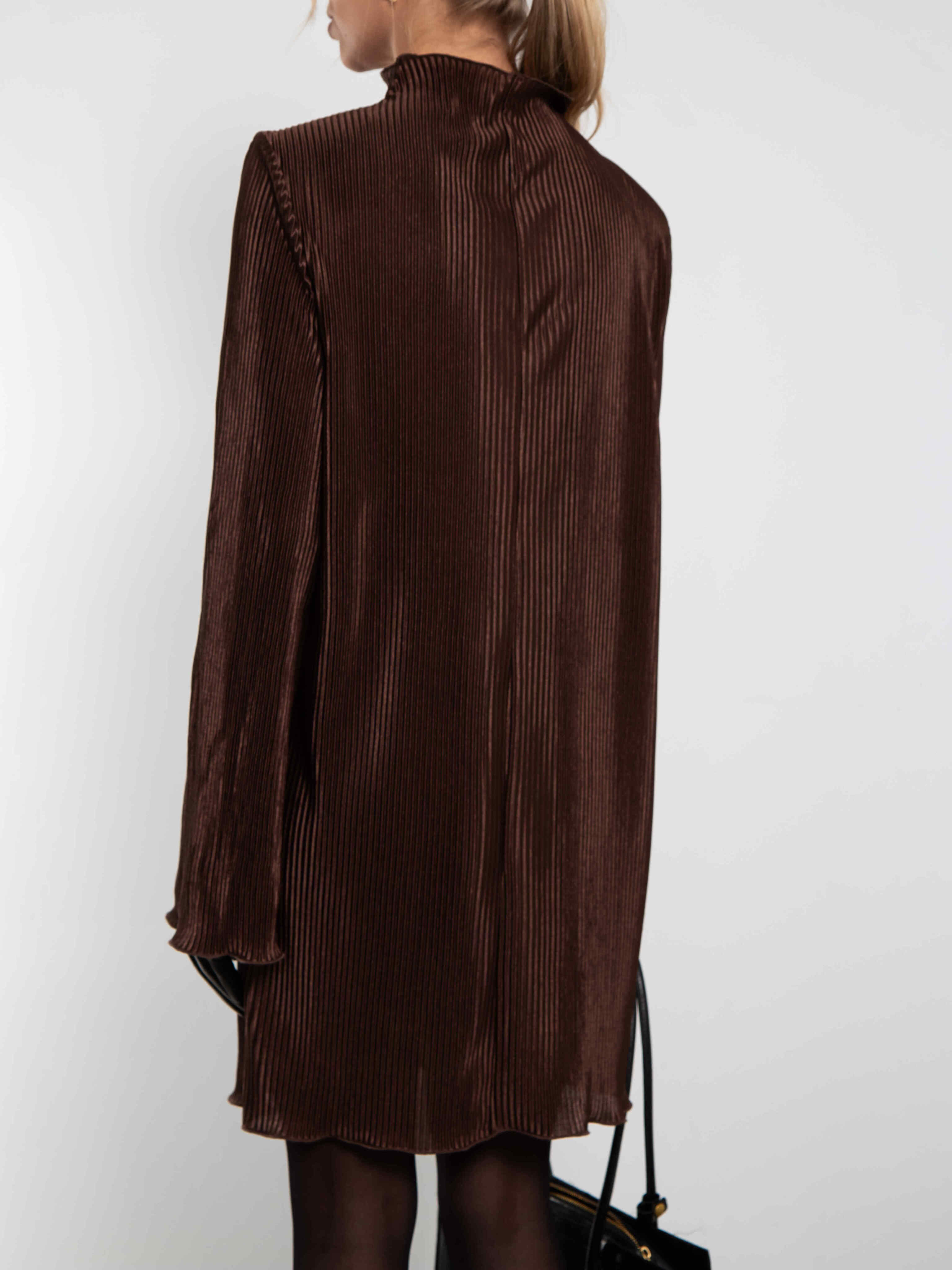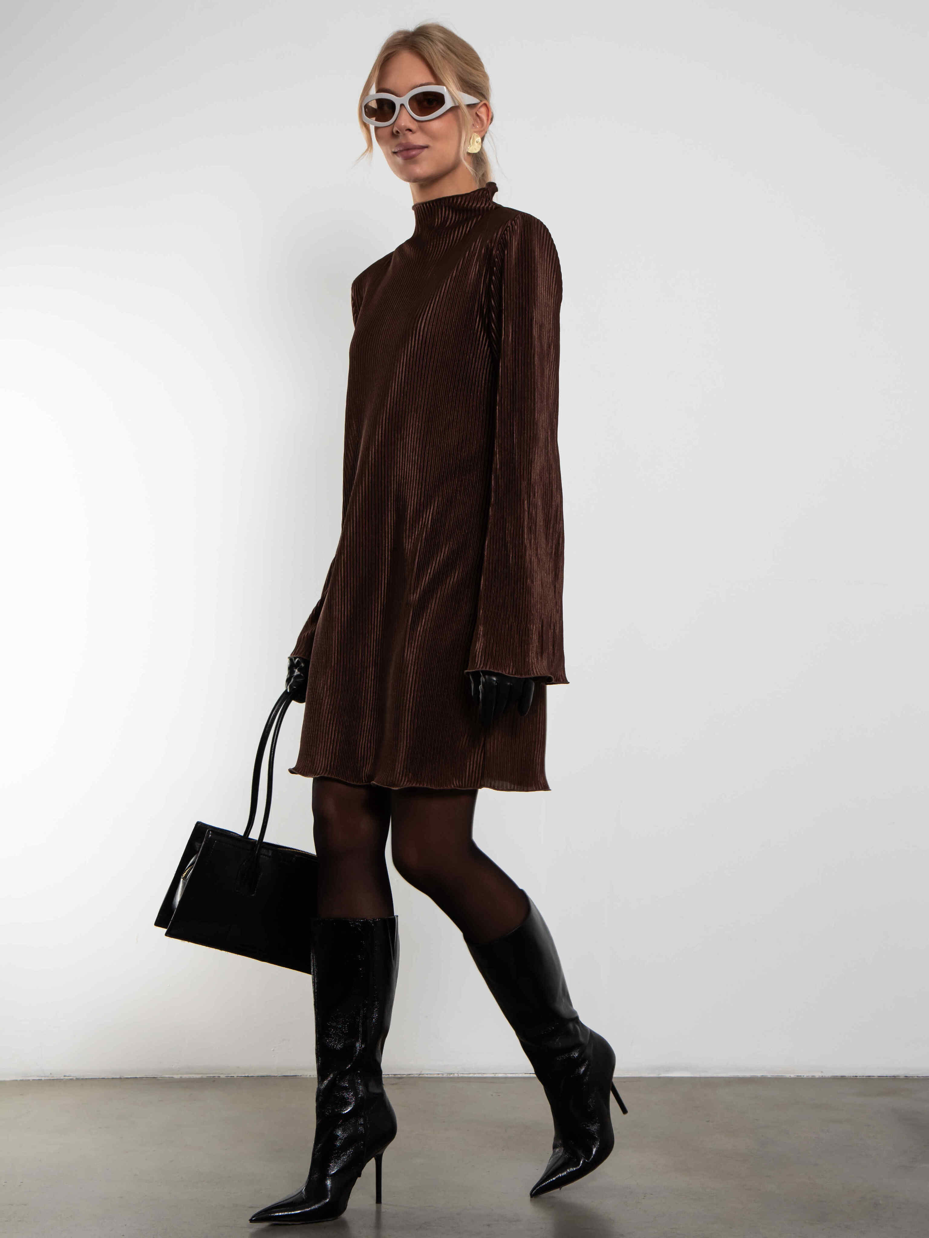 Платье из гофрированного трикотажа шоколадного цвета