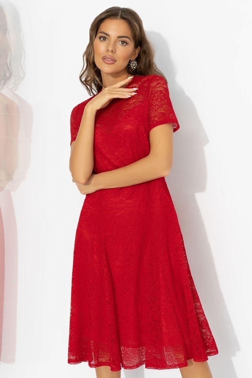 Платье кружевное красного цвета на подкладе от компании Charutti. Модель полуприлегающего силуэта. Круглый вырез горловины. Короткие рукава. Это Ваш отличный образ, в котором вы всегда чувствуете себя уверенно.