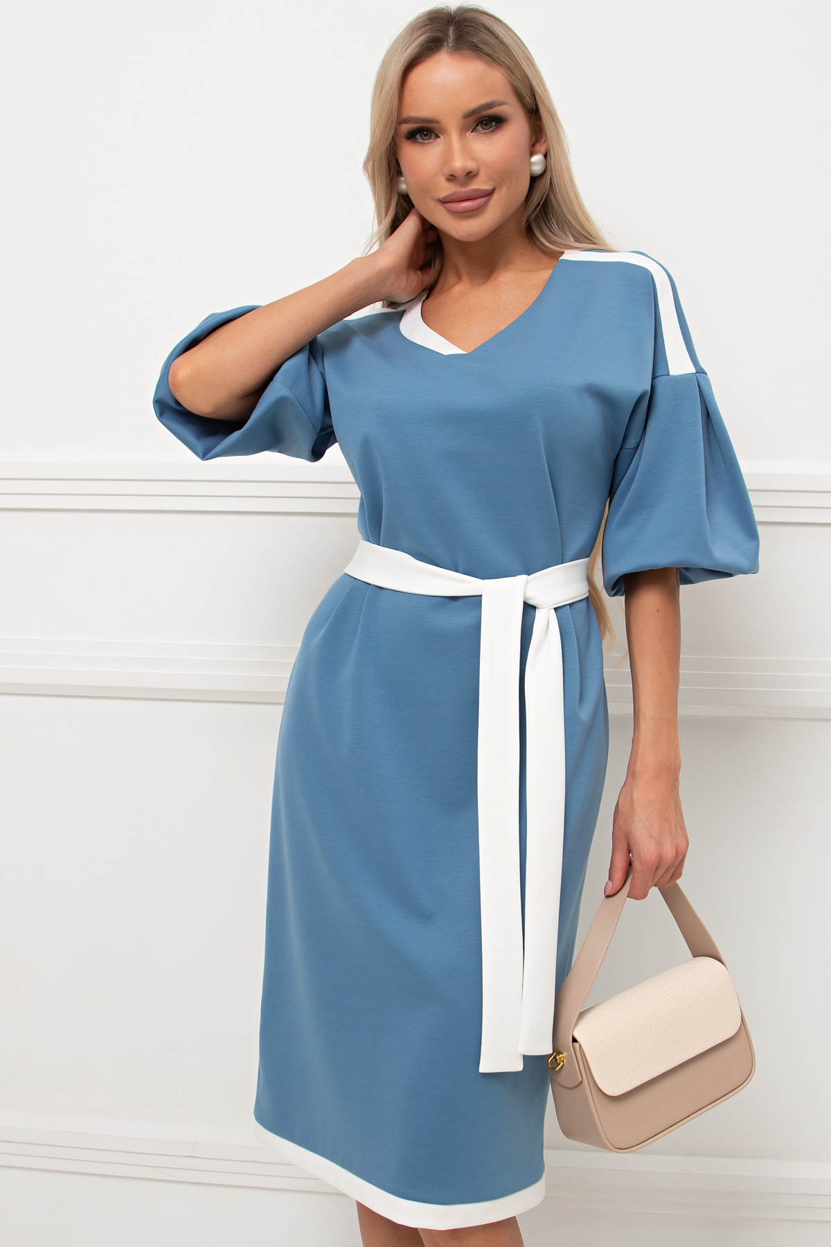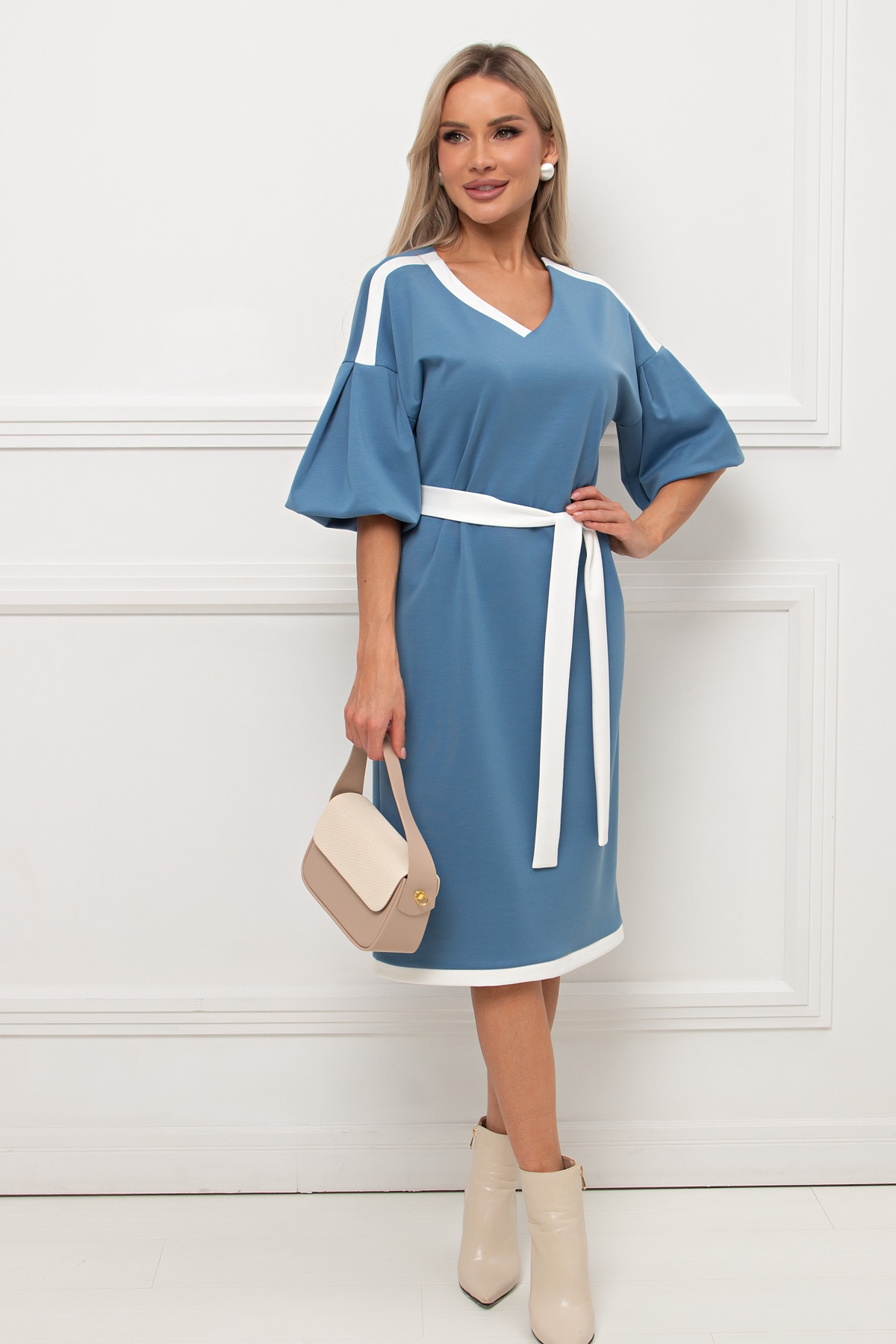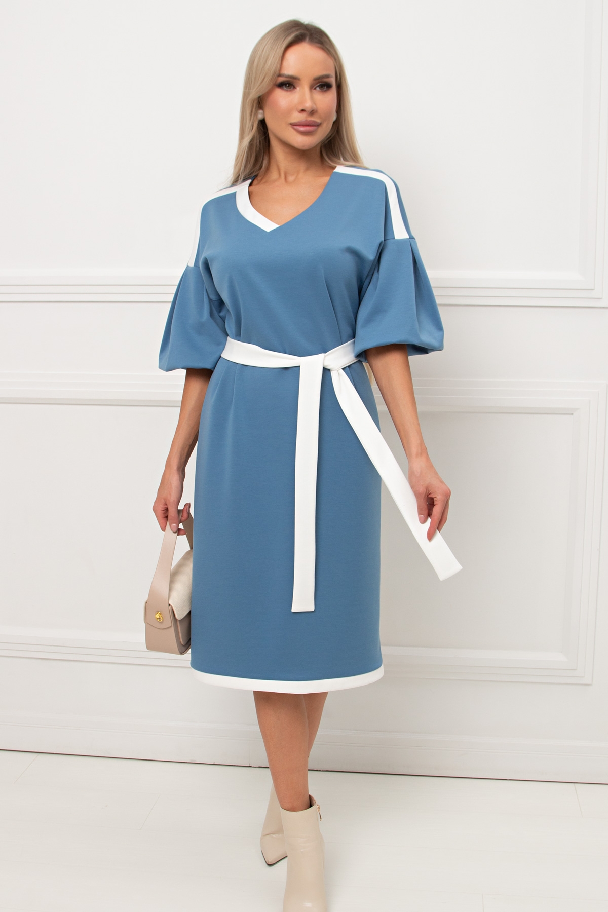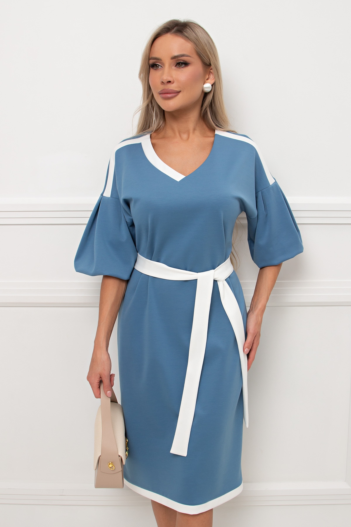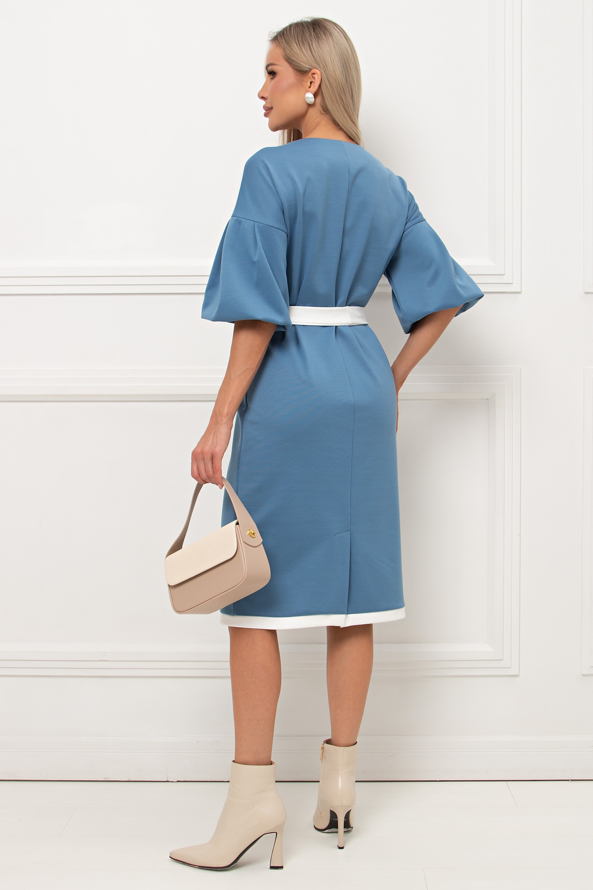 Платье трикотажное голубого цвета с рукавом-фонарик Элси №5