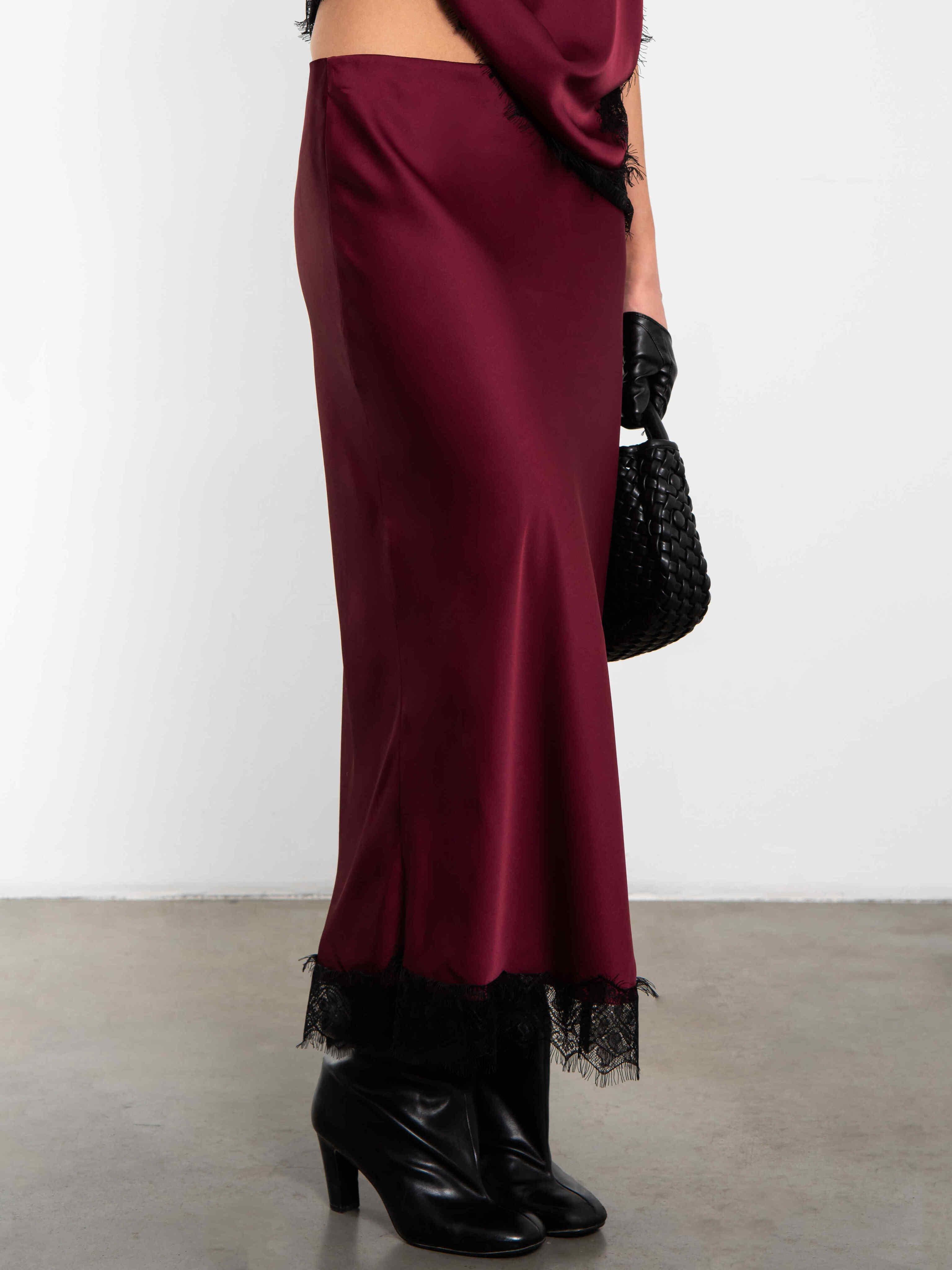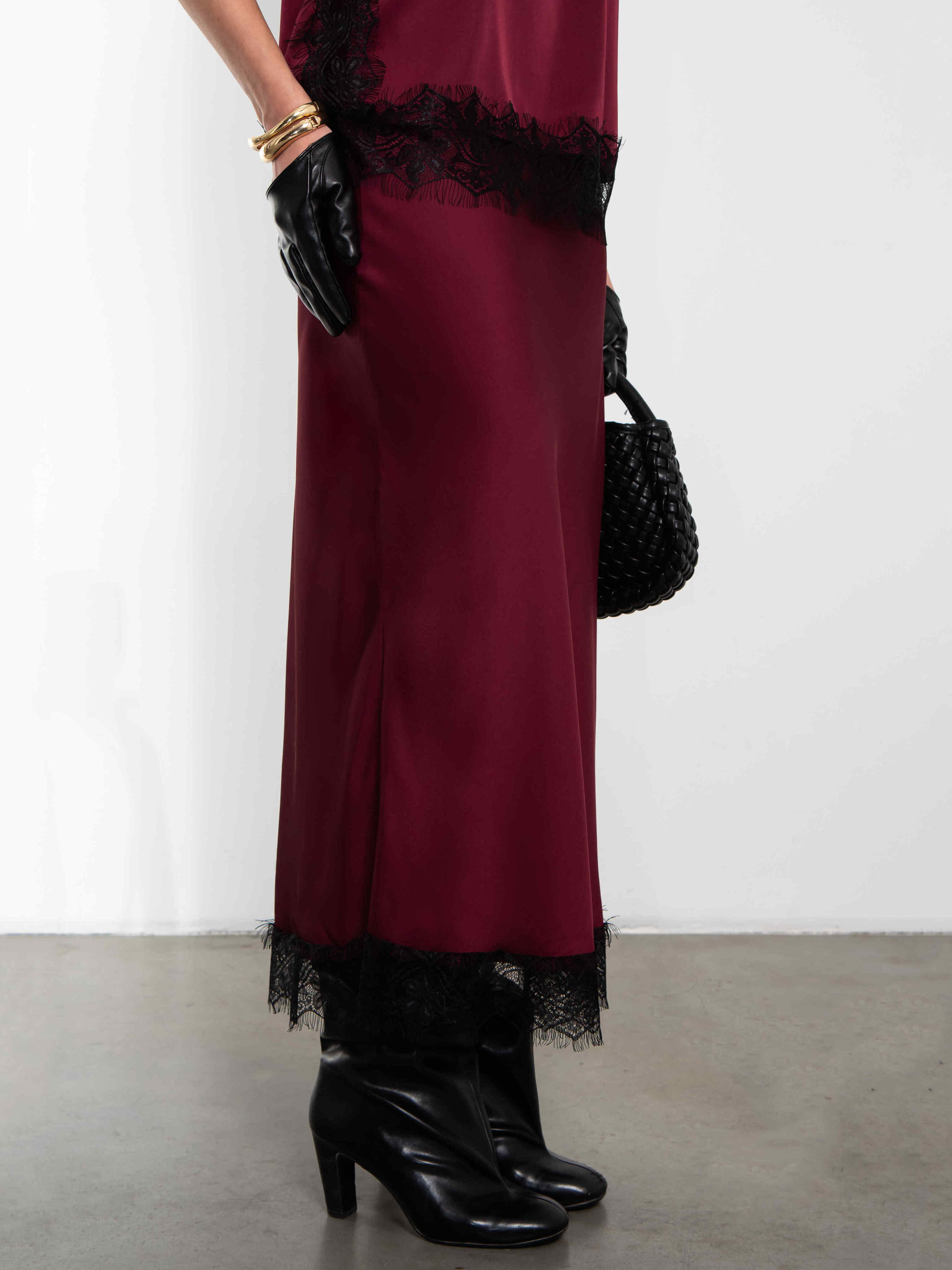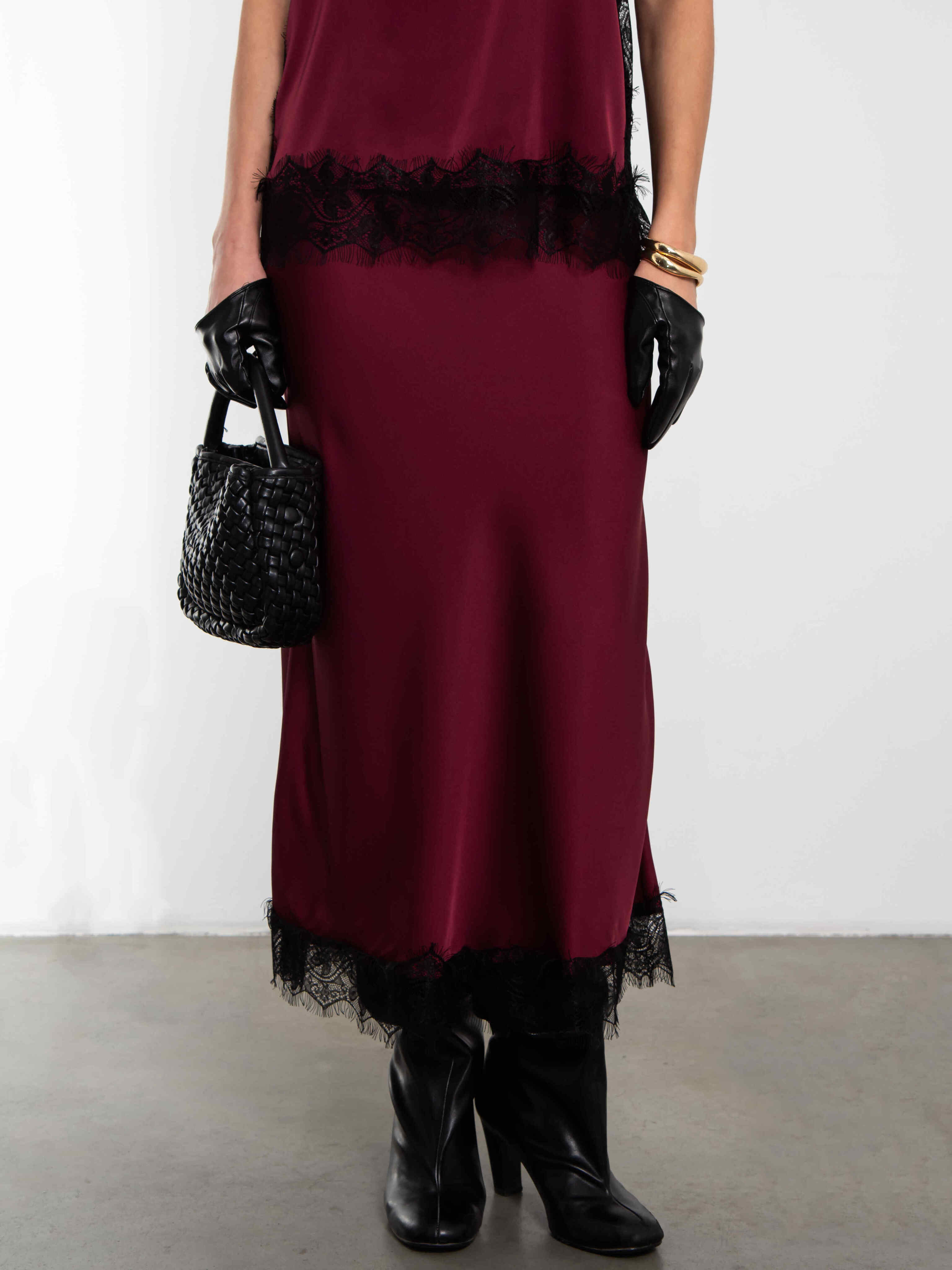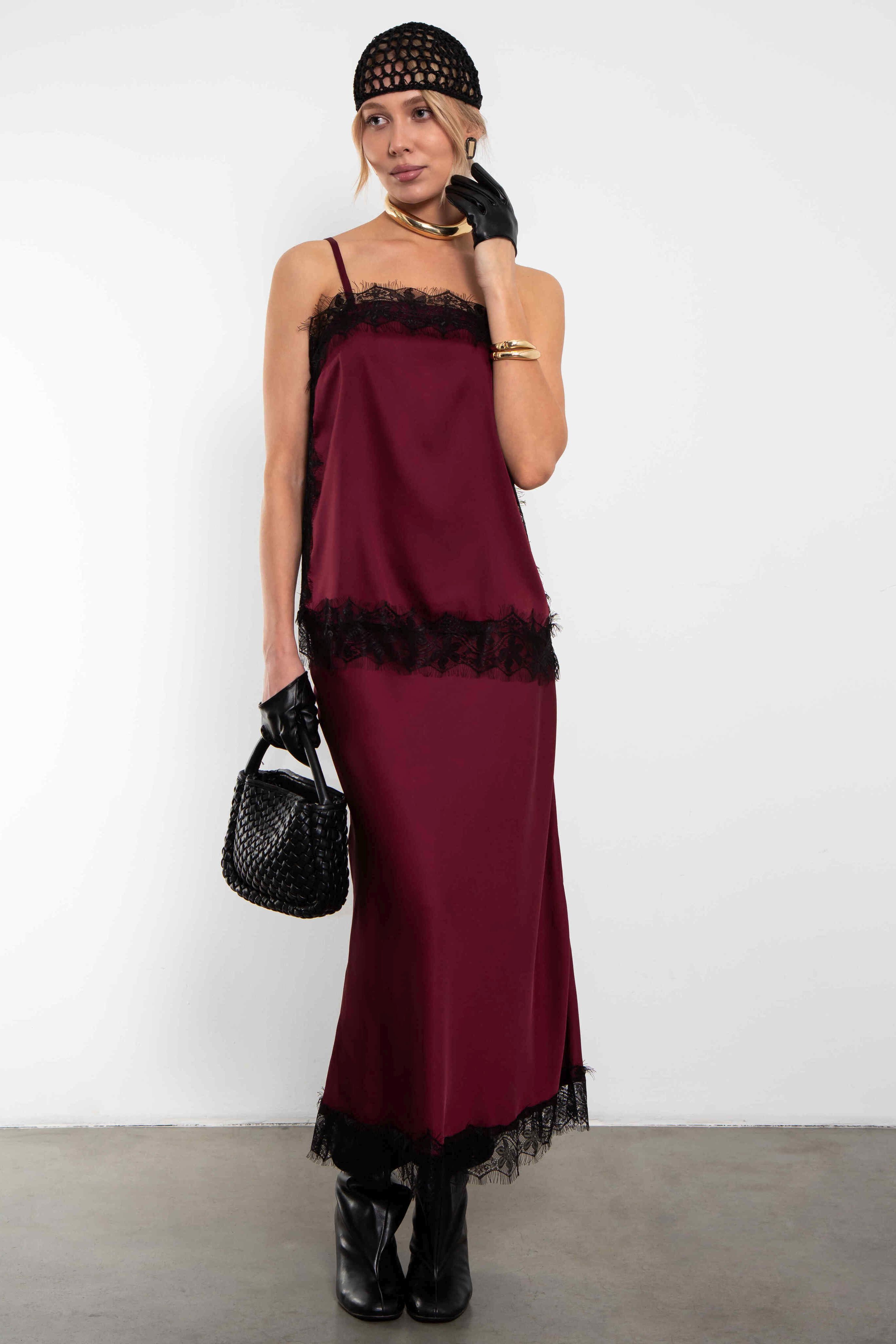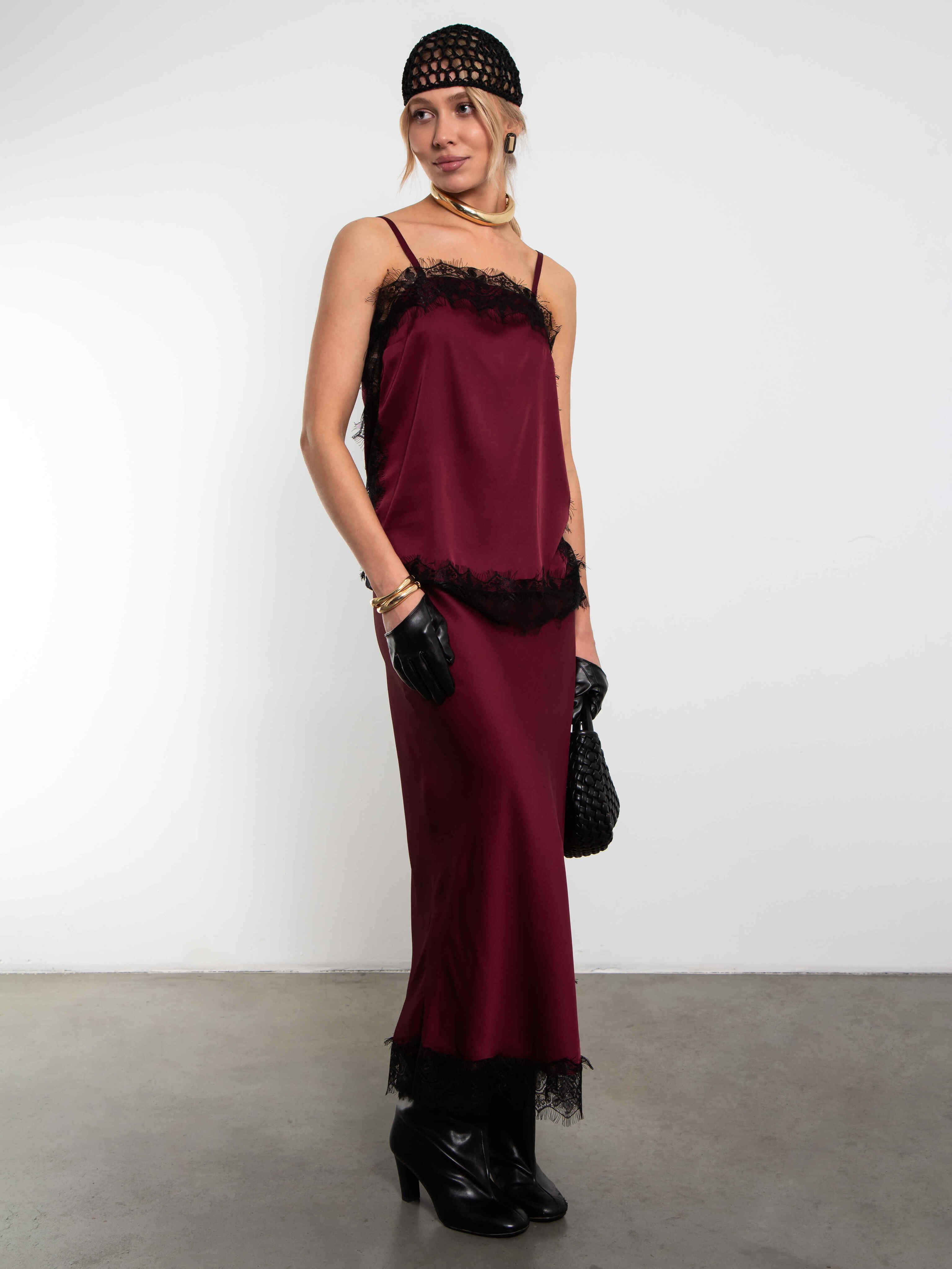 Топ бордовый в бельевом стиле на тонких бретелях с кружевом