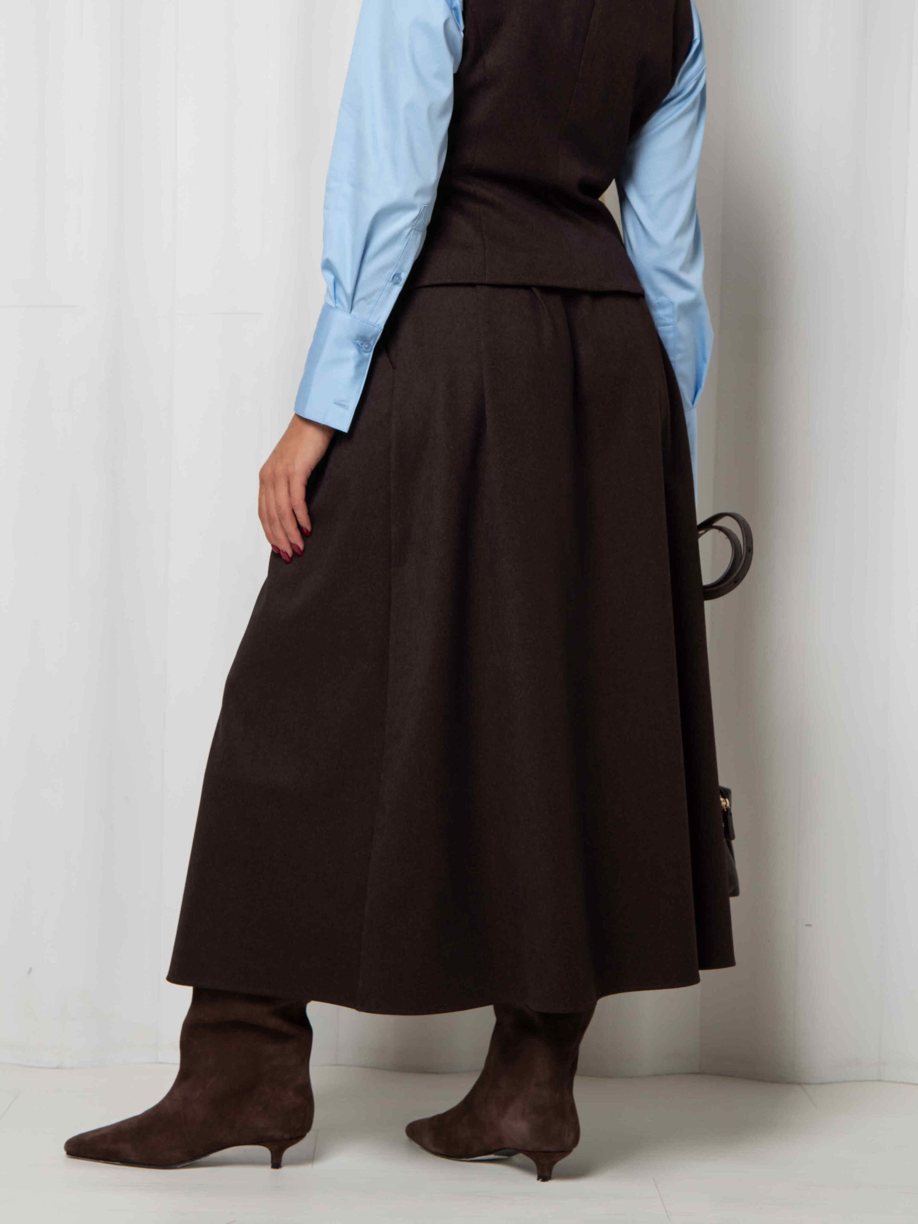 Юбка длинная коричневая с карманами