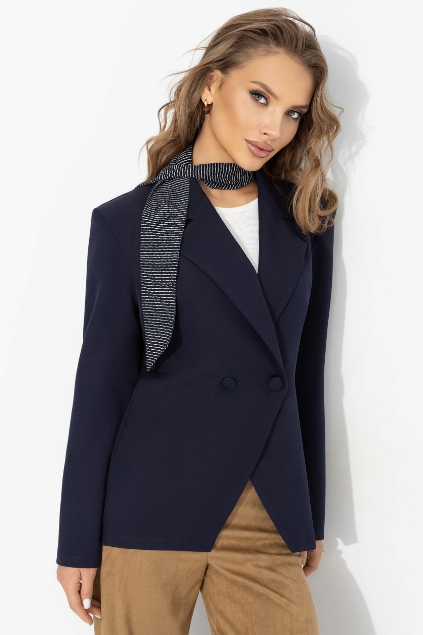 Жакет тёмно-синий с застёжкой на пуговицу