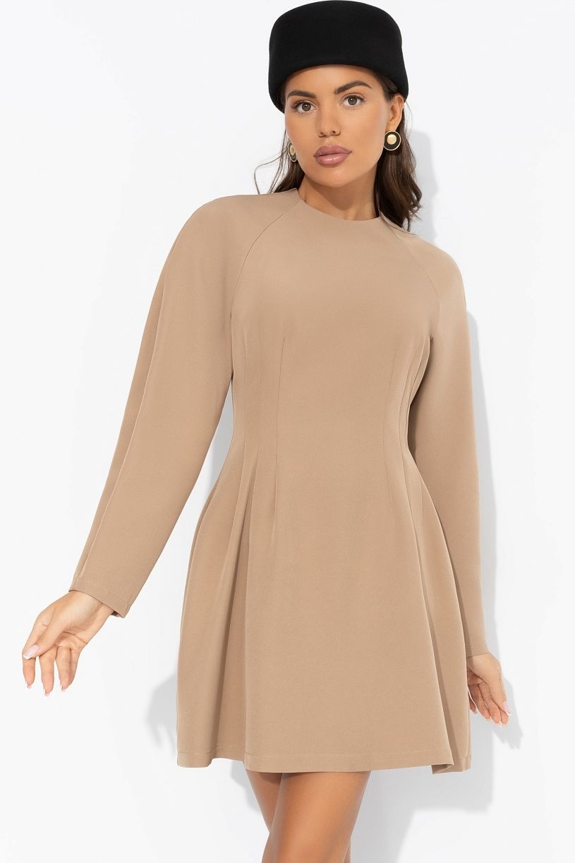 Платье бежевое приталенное с длинными рукавами от компании Charutti, выполнено из костюмного полотна "барби". Застёжка на скрытую молнию по спинке изделия. Это Ваш отличный образ, в котором вы всегда чувствуете себя уверенно.