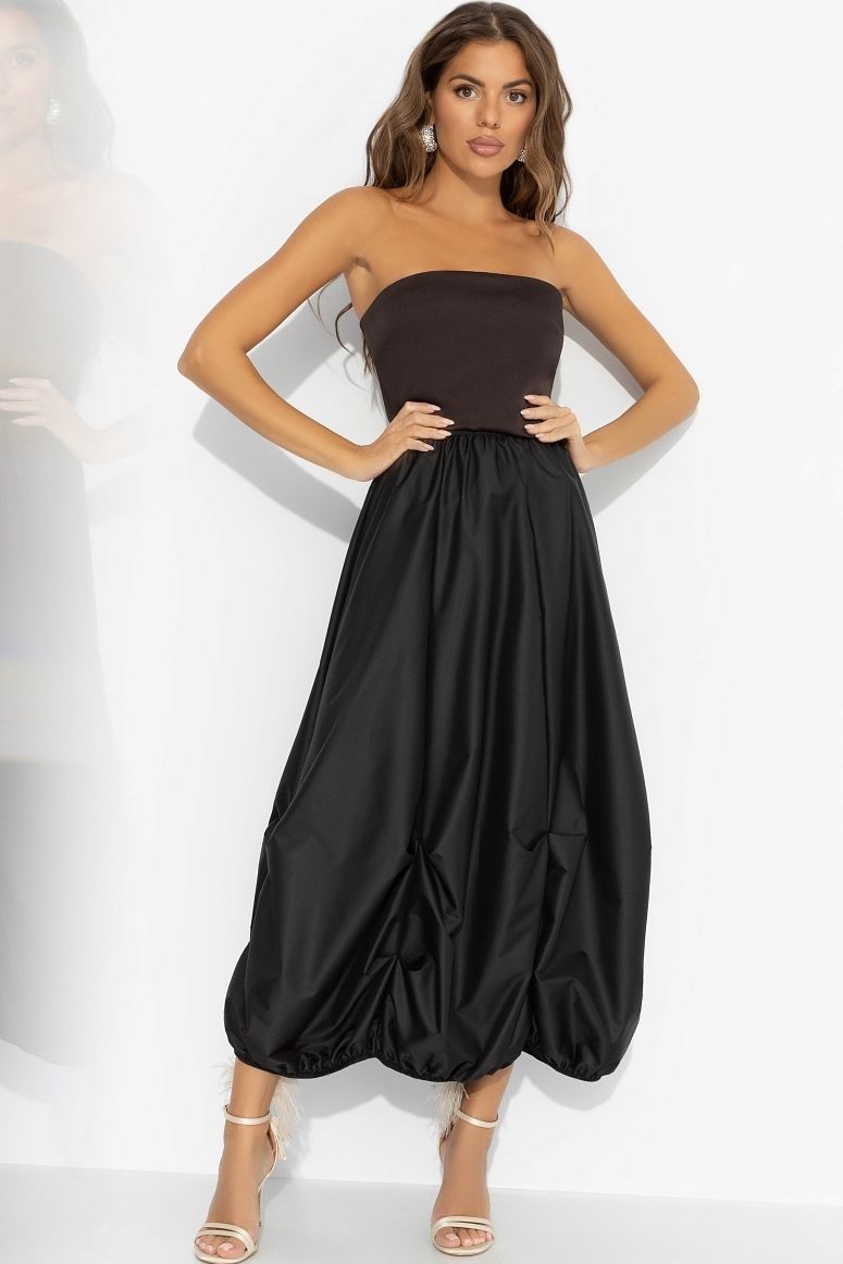 Юбка‑баллон чёрная от компании Charutti. Объемная юбка из жатой ткани с отливом и защипами. Пояс на резинке. Держит форму, не мнётся. Идеальна для трендовых сетов и акцентных образов любой вечеринки.