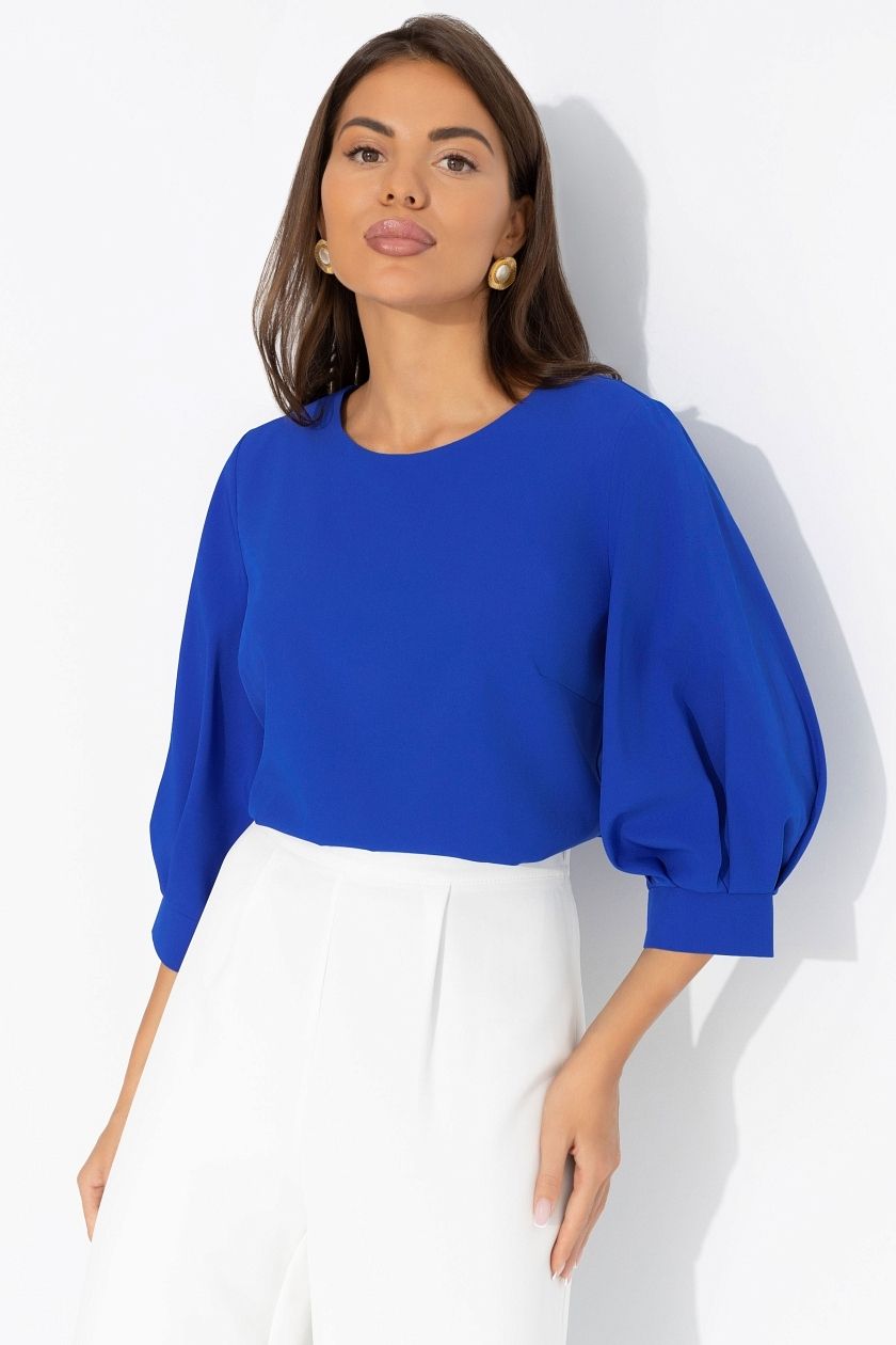 Блузка синяя базовая от компании Charutti. Модель прямого силуэта, выполнена из плательного полотна "ниагара". Застегивается на деликатную пуговицу по спинке изделия. Блуза хорошо смотрится в заправленном виде и навыпуск. Прекрасное решение для создания стильного образа.