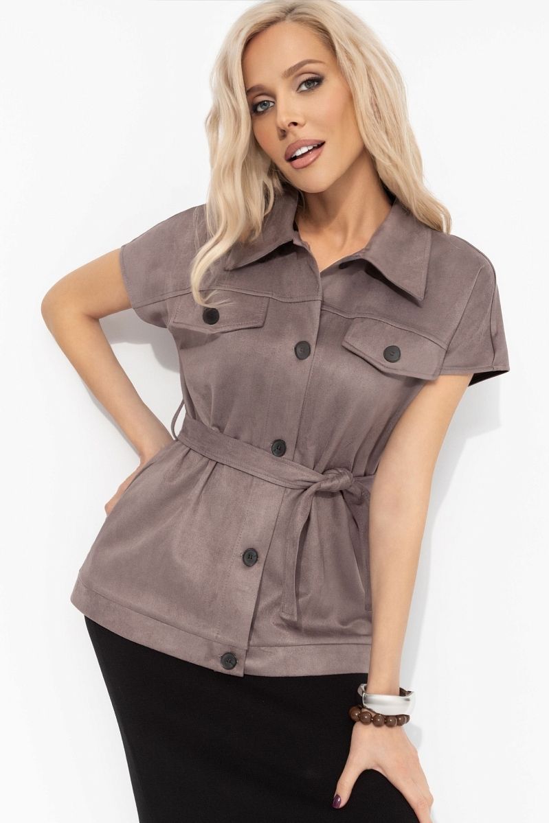 Жилет коричневый из мягкой замши от компании Charutti. Модель прямого силуэта удлинённый с карманами. Жилет застегивается на пуговицы. Есть пояс в тон изделия в комплекте. Прекрасное решение для создания стильного образа.