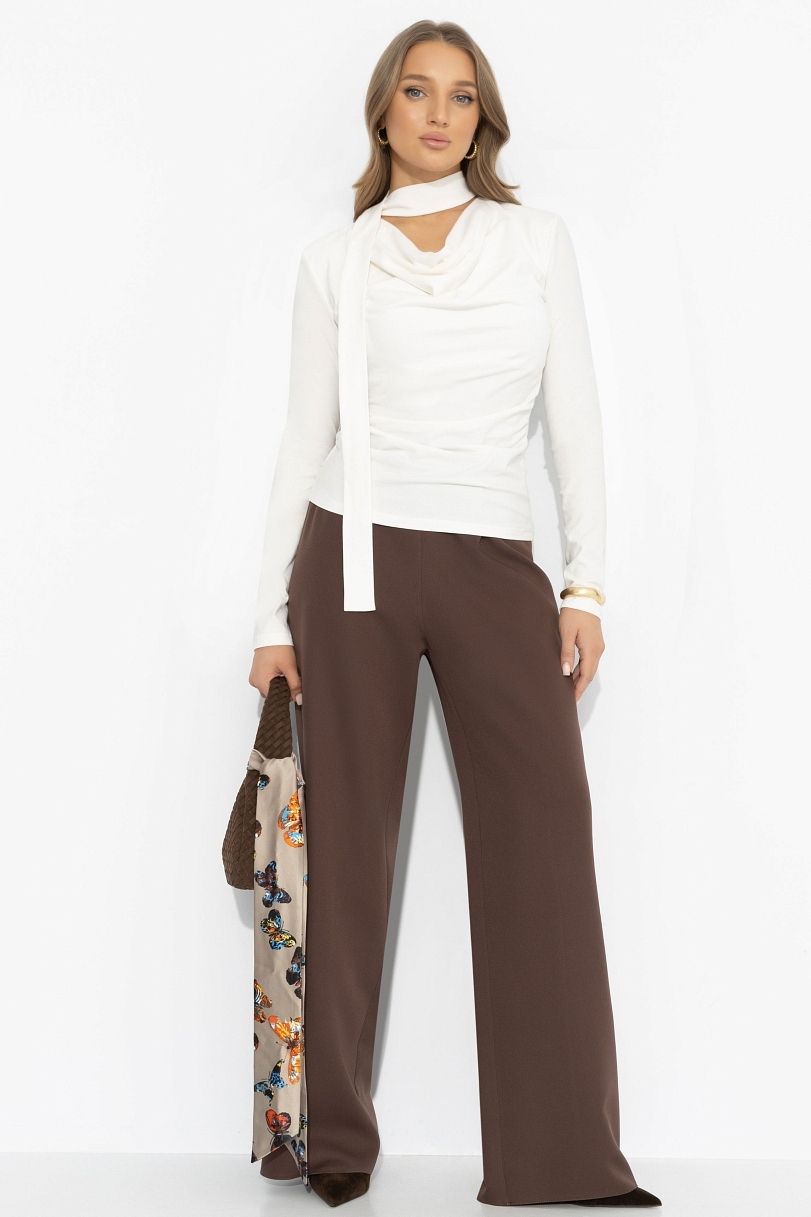Брюки шоколадного цвета с защипами от производителя Charutti. Модель прямые, выполнены из костюмного полотна "Барби". Посадка высокая, на талии. Изделие застегивается на скрытую молнию сбоку. Аккуратные выточки на линии талии. Идеальный выбор для создания неповторимого образа.