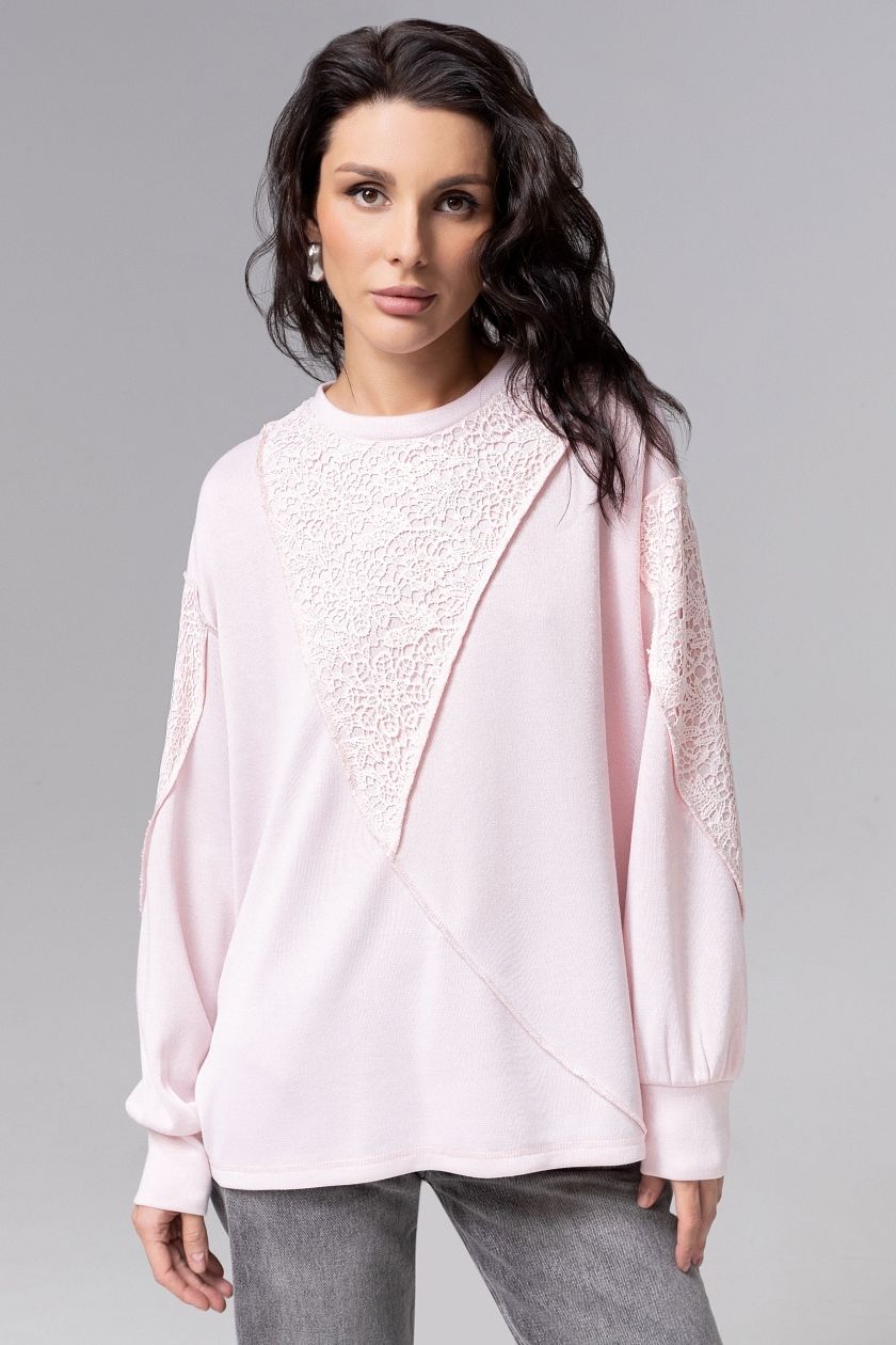 Свитшот розовый со швами наружу от компании Charutti, выполнен из трикотажного полотна. Свитшот свободного кроя. Акцентные вставки из высокопрочного кружева и наружние швы добавляют образу деликатность и сложность текстуры. Безупречный крой изделия обеспечивает идеальную универсальную посадку, мягко драпируя силуэт. Стильный вариант на каждый день.