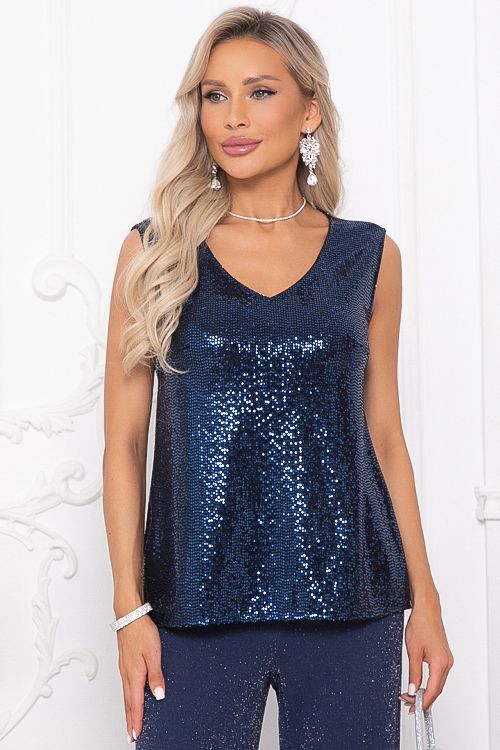 Топ трикотажный с пайетками от бренда Avili. Модель полуприлегающего силуэта, V-образный вырез горловины. Без рукавов. Низ ровный, без разрезов. Идеальный выбор для создания повседневного образа.