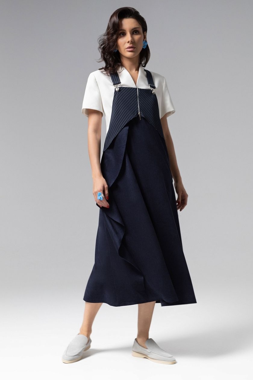Платье-футляр трикотажное чёрное с рукавами из шифона