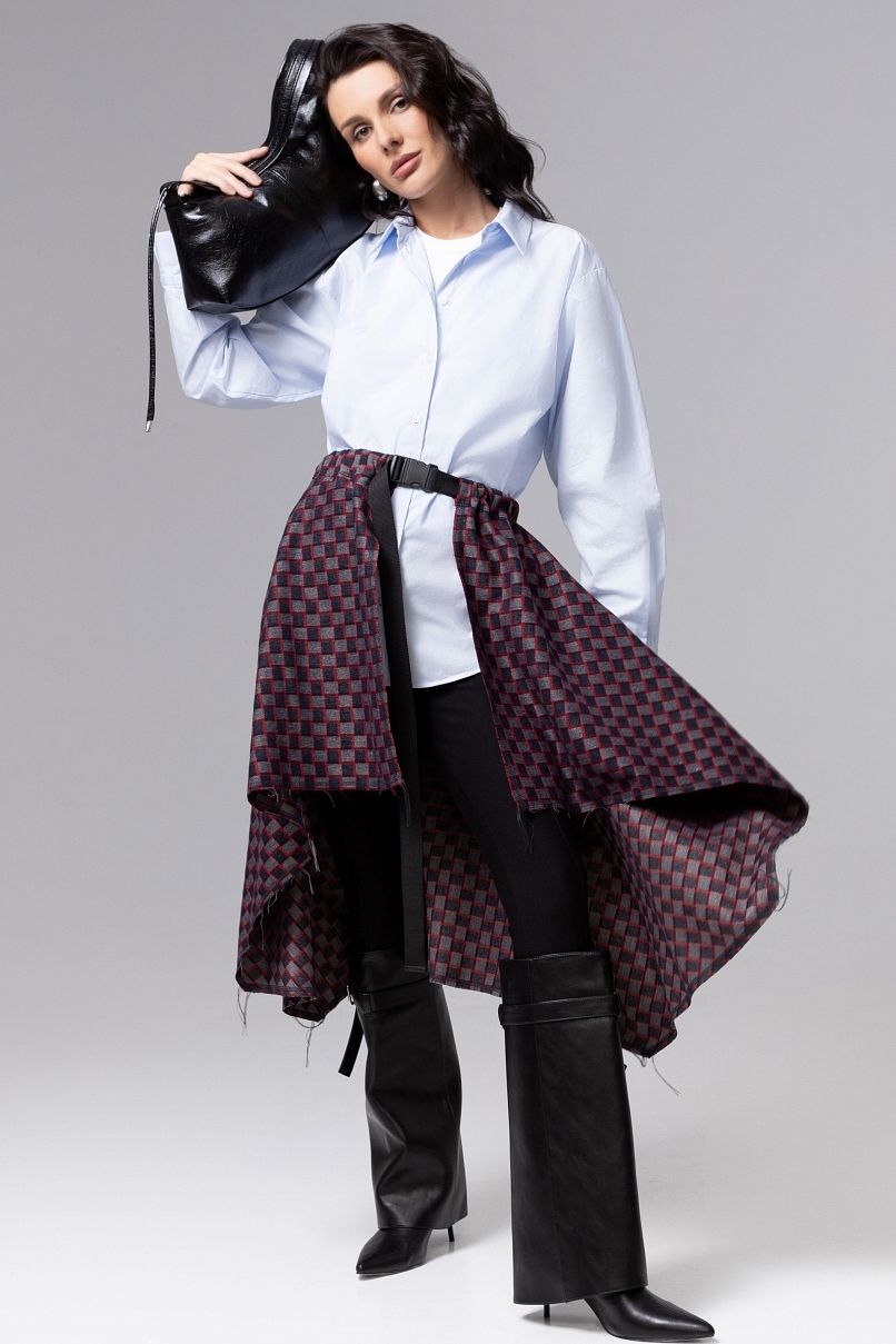 Юбка-килт в клетку с необработанными краями от компании Charutti, выполнена из костюмной ткани "колледж". Регулируемый пояс позволяет идеально подогнать силуэт под индивидуальные параметры, подчеркивая талию. Интересный вариант для создания модного образа.