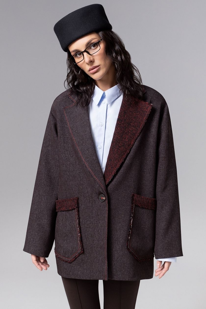 Жакет коричневый на подплечниках от компании Charutti, выполнен из костюмного полотна. Изделие сочетает в себе мощь классического кроя и утонченную элегантность. На спинке дизайнерский принт. Его модный силуэт, акцентированный выразительными лацканами и объемными карманами, подчеркивает хрупкость фигуры, создавая эффектный контраст. Высокое качество пошива проявляется в безупречной посадке, точном структурировании формы и использовании роскошных материалов. Продуманная конструкция с яркой износостойкой подкладкой обеспечивает комфорт и сохраняет безупречный вид даже при длительном ношении. Ткань с легким блеском. Идеальный вариант под любой наряд - супер-находка для современных леди.