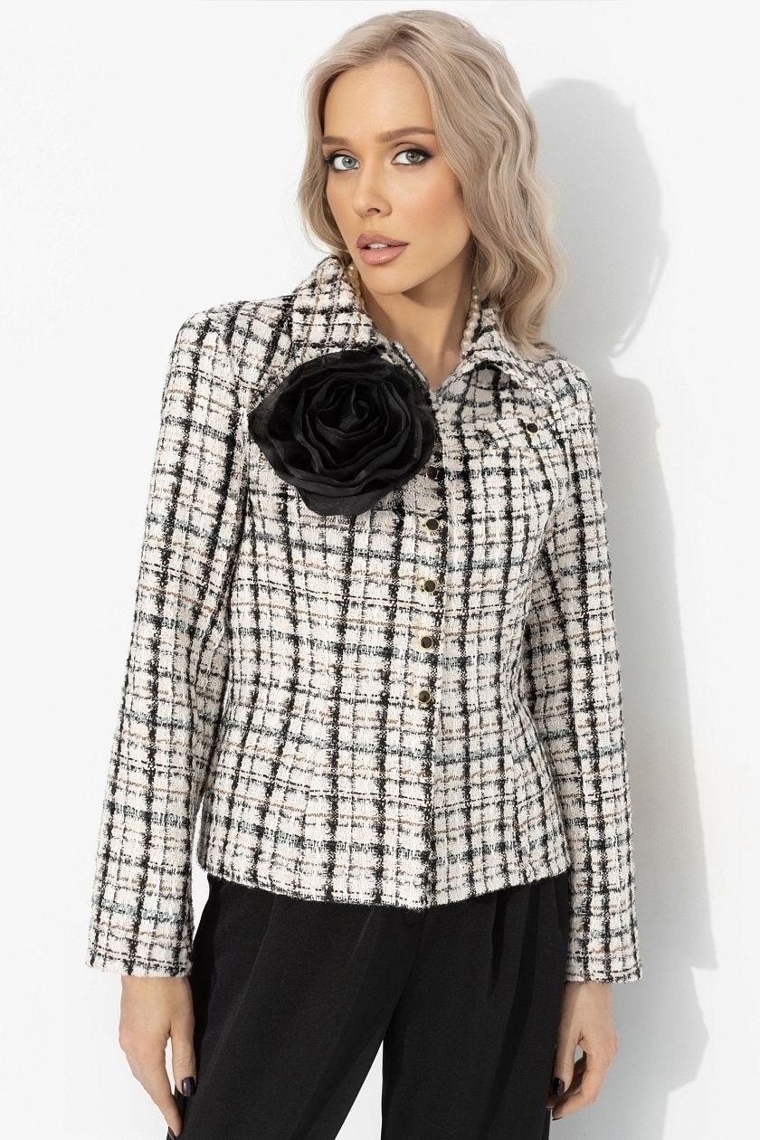 Жакет в стиле Шанель от компании Charutti, выполнен из ткани "Шанель". Отложной воротник на стойке, длинные рукава, по переду застёжка на пуговицы. Без подклада. Легко стилизовать с джинсами, брюками или юбкой. Брошь в комплект не входит, продается отдельно.